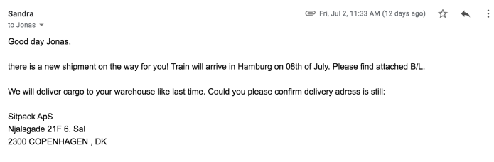 New delivery dates from Denmark: