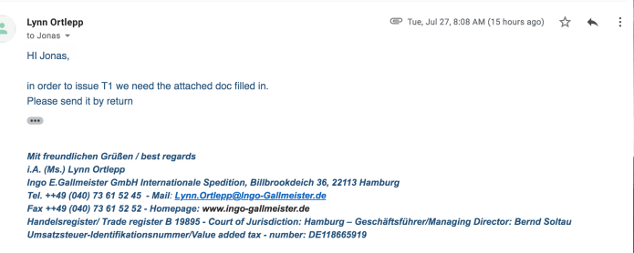 The EU shipment due on the 8th has finally started making its way from Hamburg to Denmark - I just signed to Customs papers today. Another 1500 will arrive around the 10th of august in Hamburg/Denmark